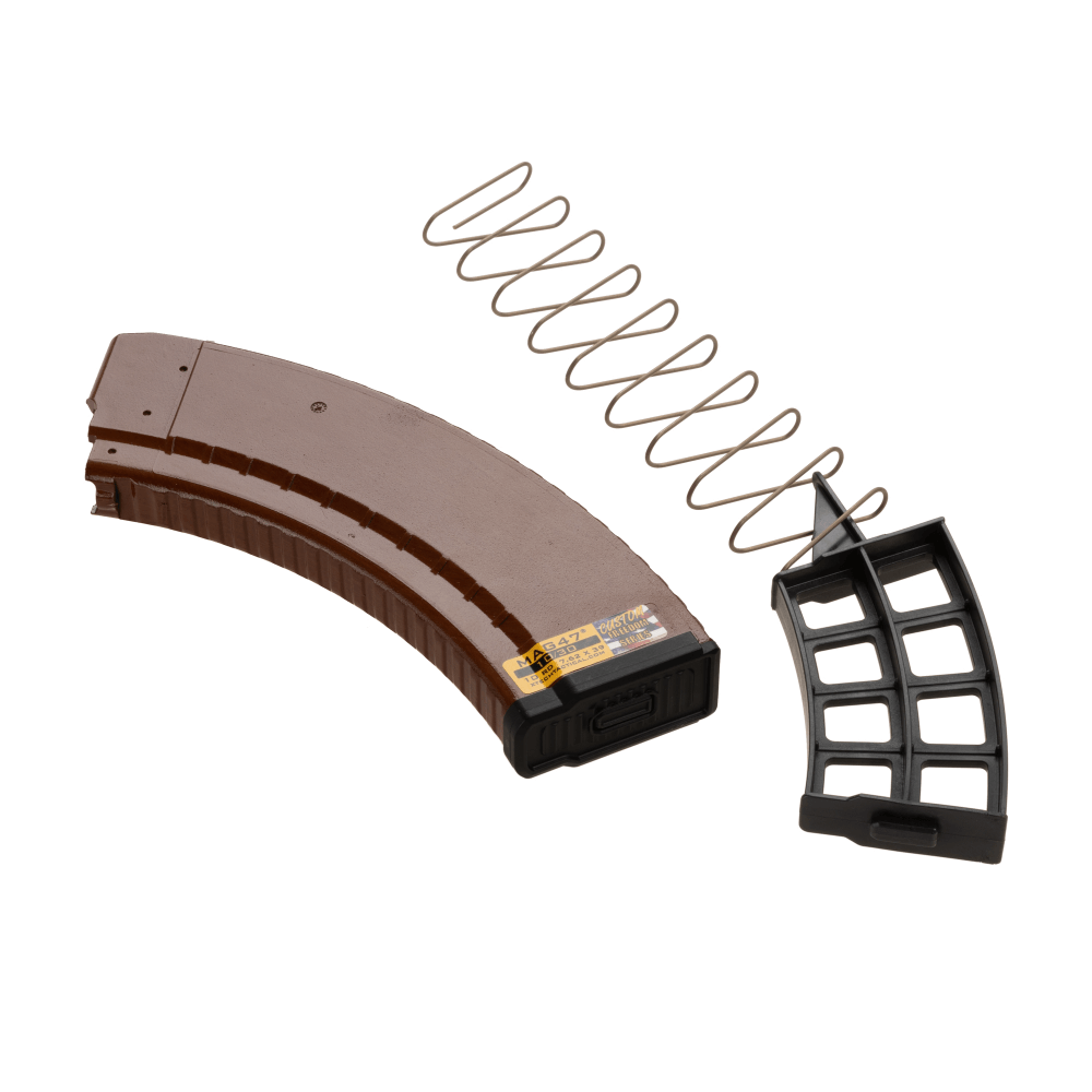 Our MAG47 Fakelite ELITE 10/30 pays homage to the Bakelite AK47 magazines. These magazines look incredible and offer durability and compatibility far superior to that of the thermoset AK47 Bakelite mags produced through Eastern Europe. Our approach to elite strength is a utilizing our legendary MAG47 polymer with steel reinforcements on the feed-lips and locking lugs. The finish is Cerakote with a post production clear coat.
