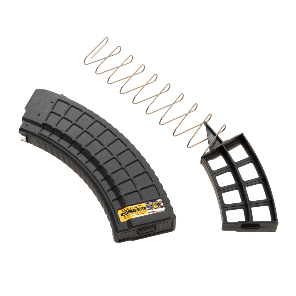 Our new upgraded version of the MAG47 MIL has improved tread for better grip, reduced overall thickness of 0.065″ for better fit in pouches and updated follower for improved compatibility with all AKs.