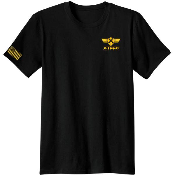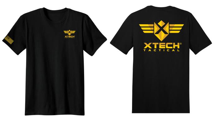 Show your support of the XTech Tactical mission with our Logo T Shirt! These shirts are insanely soft and feel amazing! Logo on the front and back and the American flag on the sleeve. We appreciate your support!