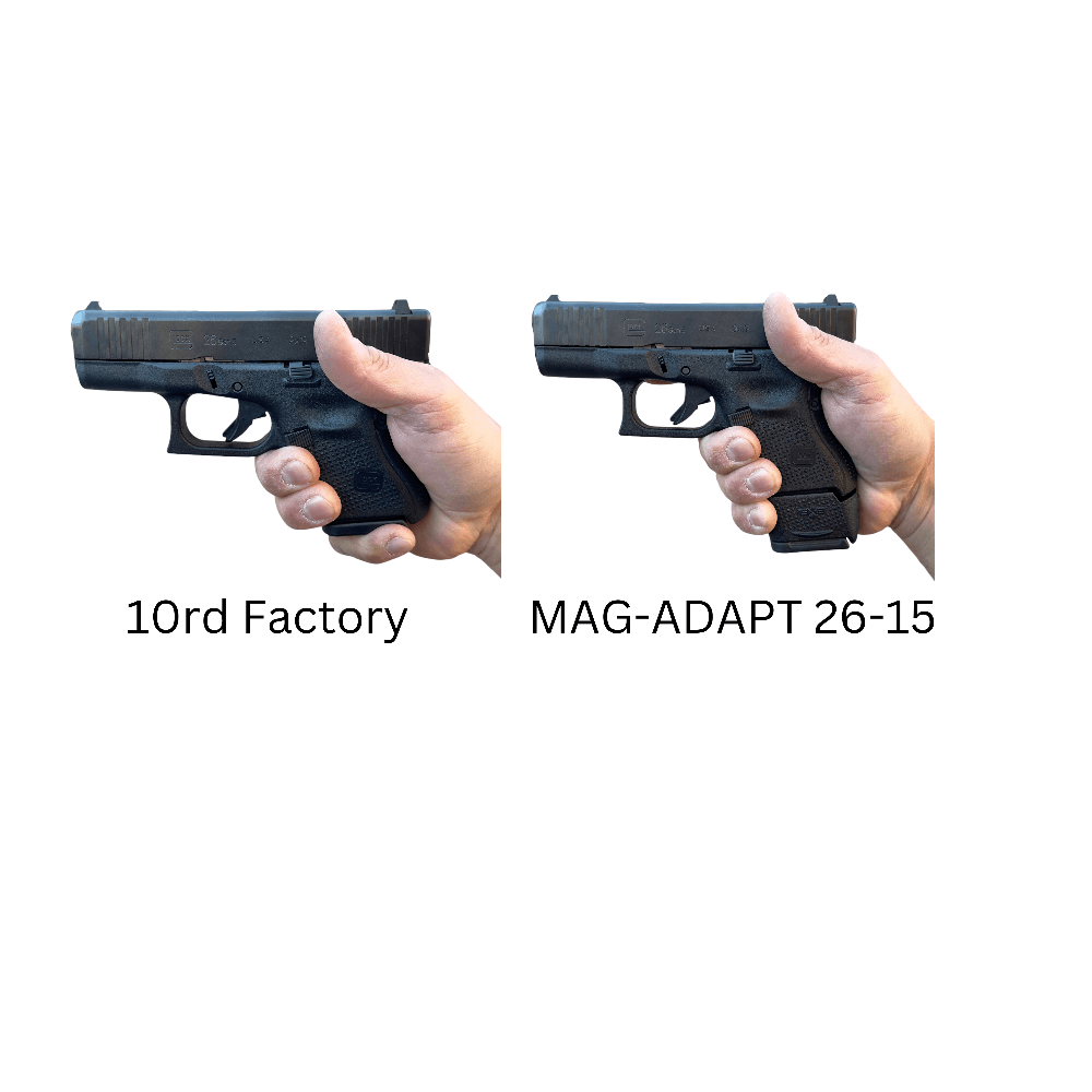 Ideal for the Glock 26 Gen3 in California but also fits all generations of the Glock 26 available to the US market. Restrictive states with distressing magazine limits mostly still allow concealed carry, and the Glock 26 is a widely favored subcompact handgun. Still, the factory mag is too short to allow a full grip. The short magazine can also be difficult to exchange, and the short grip is ripe for draw and mag exchange challenges. XTech Tactical has the solution with our MAG 26-10 Freedom Series Glock 26 10-Round Magazine with MAG-ADAPT 26-15